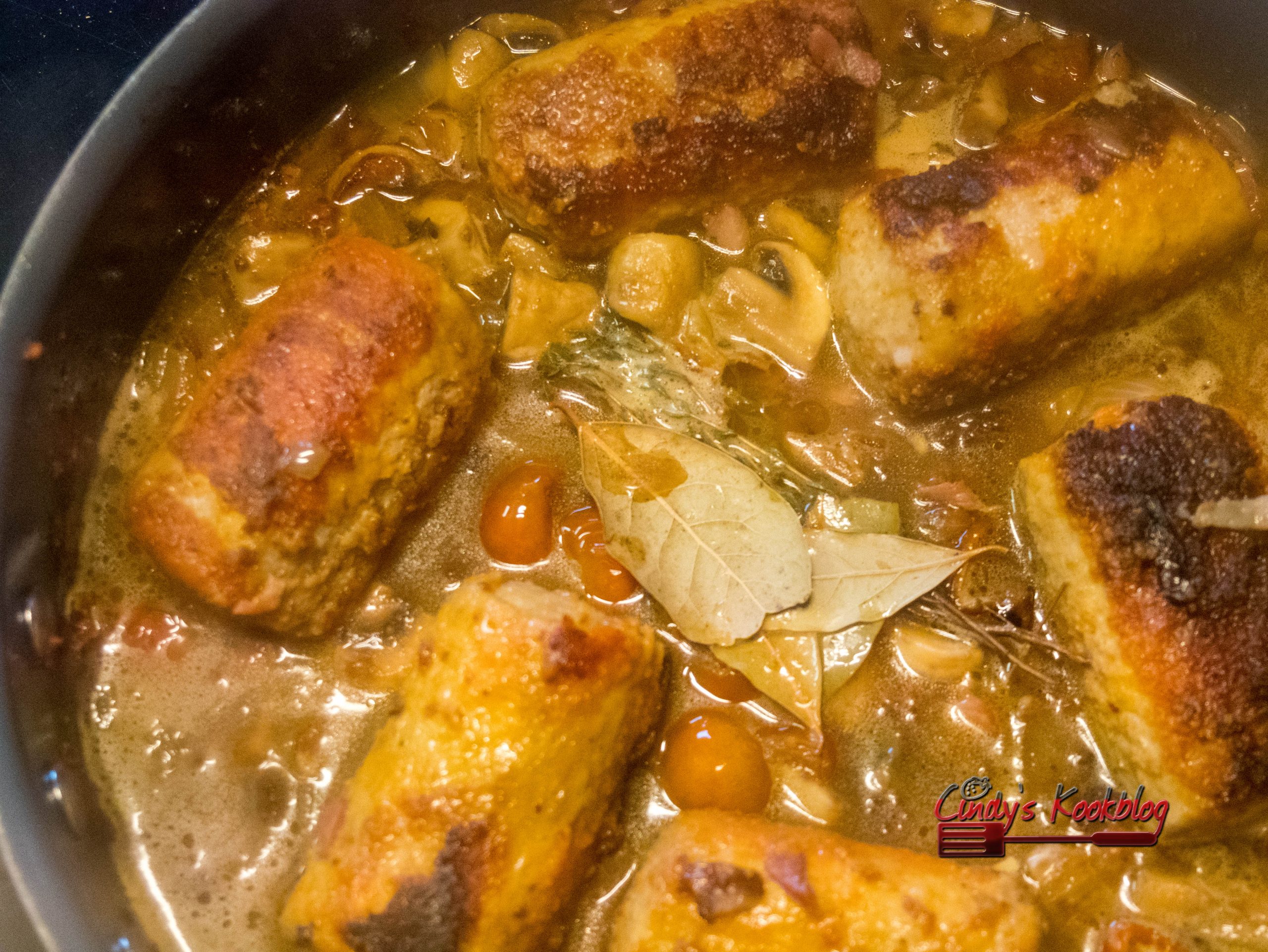 Kruid dit al even en leg er de tijm en laurier bij.