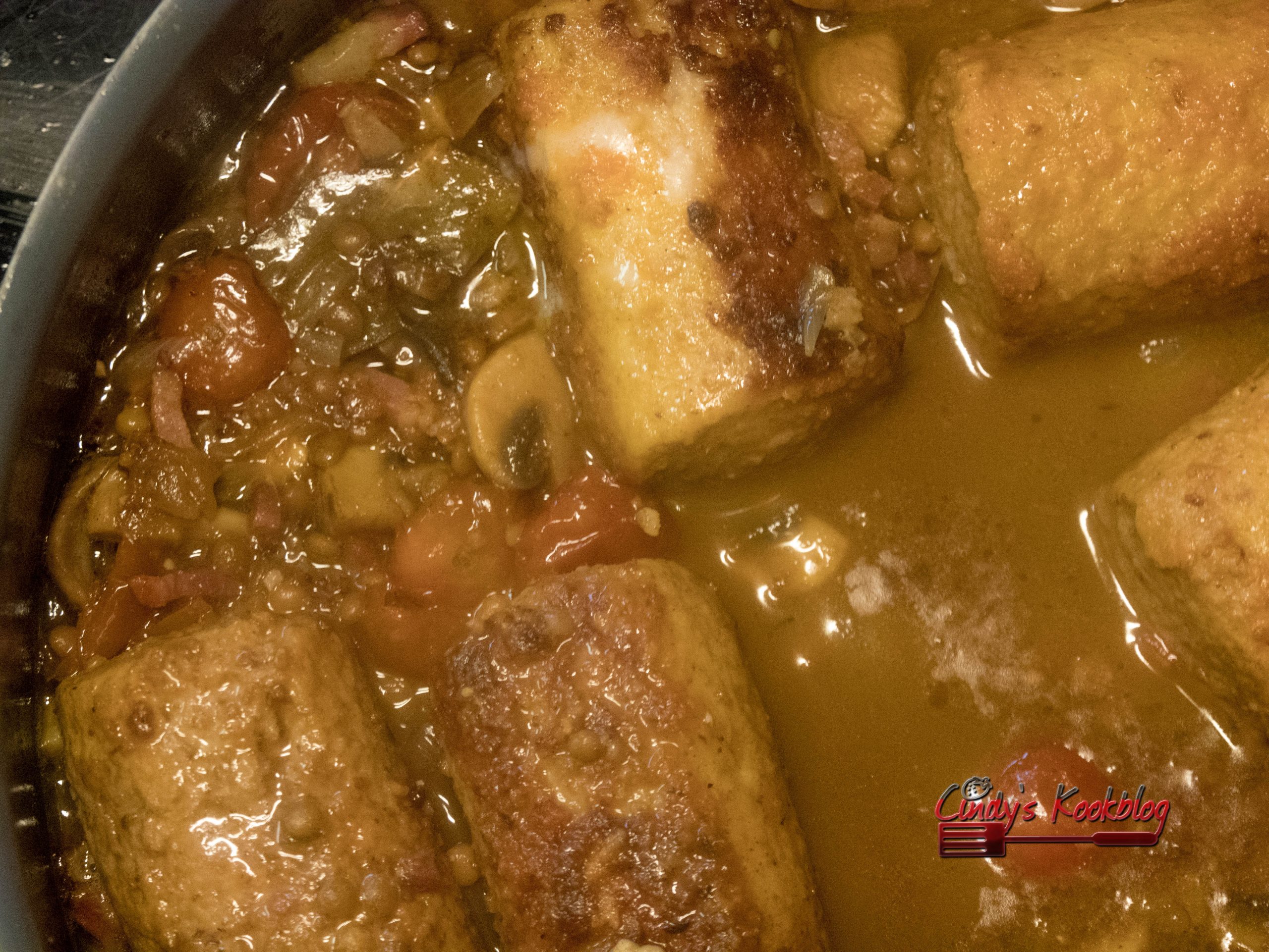 Je kan dit ook maken met gehaktballen of blinde vinken.