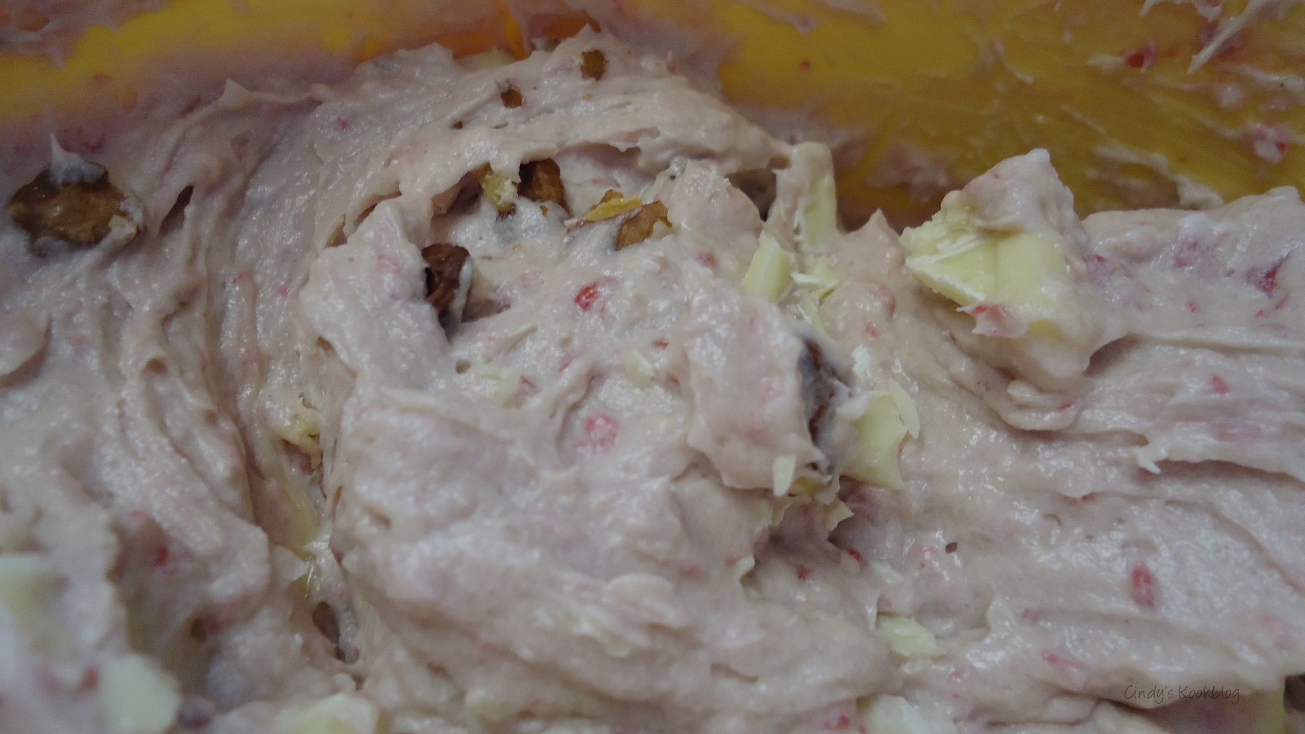 Hoe meer je roert, hoe meer de frambozen je deeg zullen kleuren.